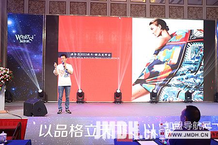 研发总监杨礼刚揭开温尔思2022秋冬新品神秘面纱,呈现了一场美轮美奂的视听盛宴,通过对消费者需求的深入感知,以及对产品的持续研发、设计,形成了成熟的原创研发设计,秋冬新品的材质都是经过了几十轮的筛选,研发人员对面料和工艺进行了精确的研究分析,淘汰了一批又一批的样品,最终呈现出居家系列、婚庆系列、轻奢系列、儿童系列、暖冬系列等让在场的经销商惊叹阵阵。
